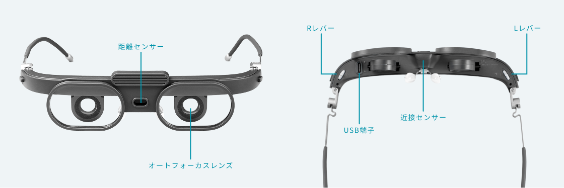 簡単な初期設定。メガネと違い度数をレバーで調節できるから、左右の視力差があっても、視力の変動が大きくても、いつでも自分で細かく調整可能。