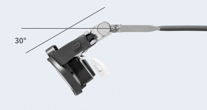 0°~30°の角度調節が可能。特に下方を見る作業で首や肩への負担を軽減。優れた耐薬品性をもつトロガミド®を使用し、アルコール消毒などにも対応。