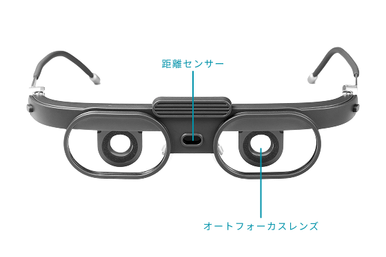 センサーで対象との距離を測定し、距離に応じてレンズの形状を瞬時に変化させることにより近くも遠くも見やすくなります。